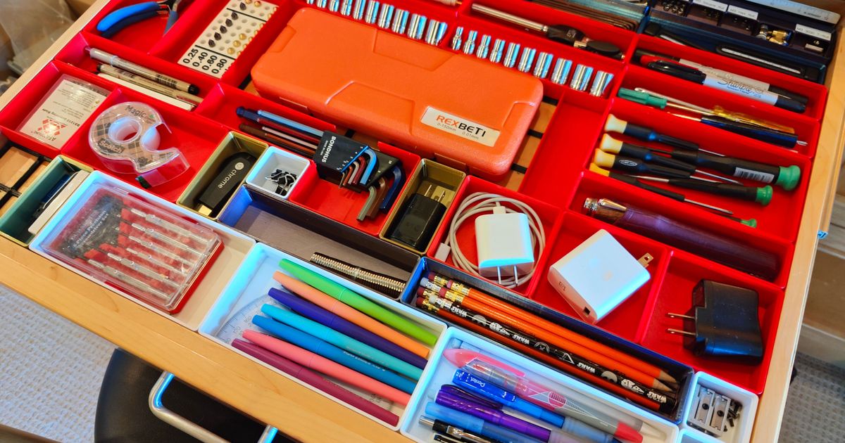 Gridfinity is an stackable system that, sadly, seems optimized for a space that has an infinite amount of flat surface. While the units do stack, going too deep with one's stack just leads to bins of chaos.